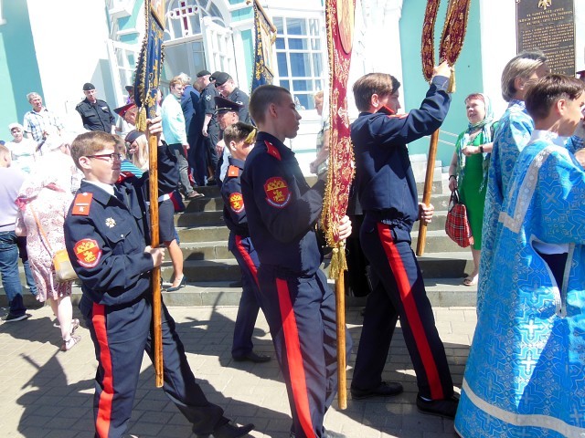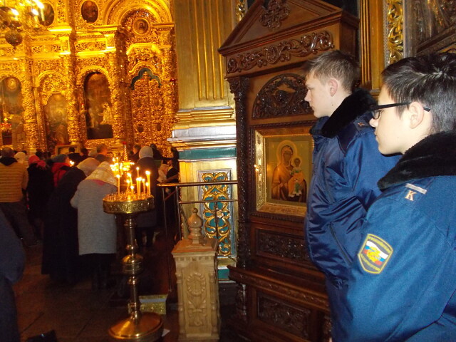 При АКТИВНОМ ВЗАИМОДЕЙСТВИИ С РУССКОЙ ПРАВОСЛАВНОЙ ЦЕРКОВЬЮ воспитанники совершали выходы в казачий патруль на массовые праздничные торжества в Свято – Успенский Собор.